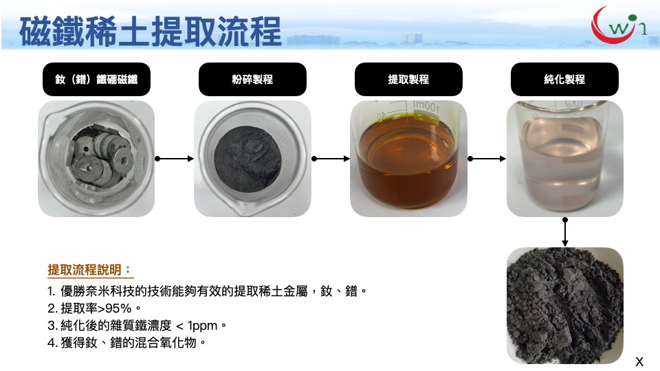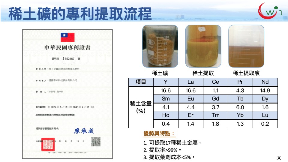 傳統稀⼟⾦屬在處理過程中,使⽤到⼤量的有毒或危害物質。UW-170環保稀⼟剝除添加劑不含氟化物及氰化物等有毒與有害物質。可⼀次性剝除17種稀⼟⾦屬,⾼效的溶出率提升產值,操作安全且沒有尾礦污染問題,降低環境危害。